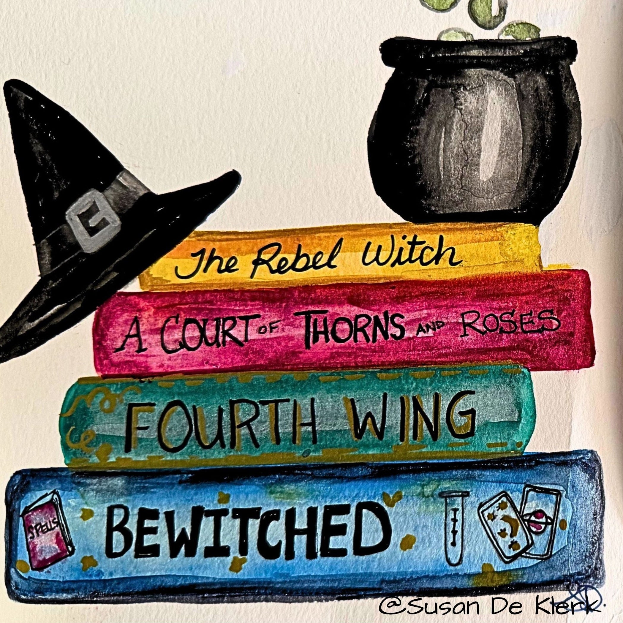 • Illustration of books with titles and coffee cup on a white background.